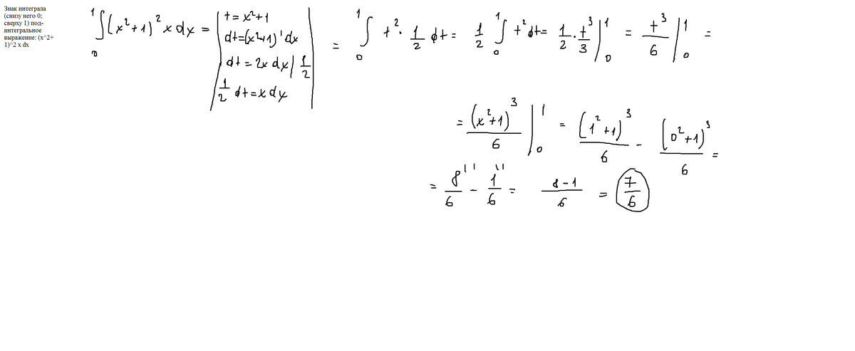 Знак интеграла(снизу него 0; сверху 1) под-интегральное выражение: (х^2+1)^2 х dx