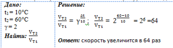 температурный коэффициент реакции равен 2 .Определите во сколько раз увеличиться скорость химической реакции от повышения температуры от 10 до 60 градусов ?
