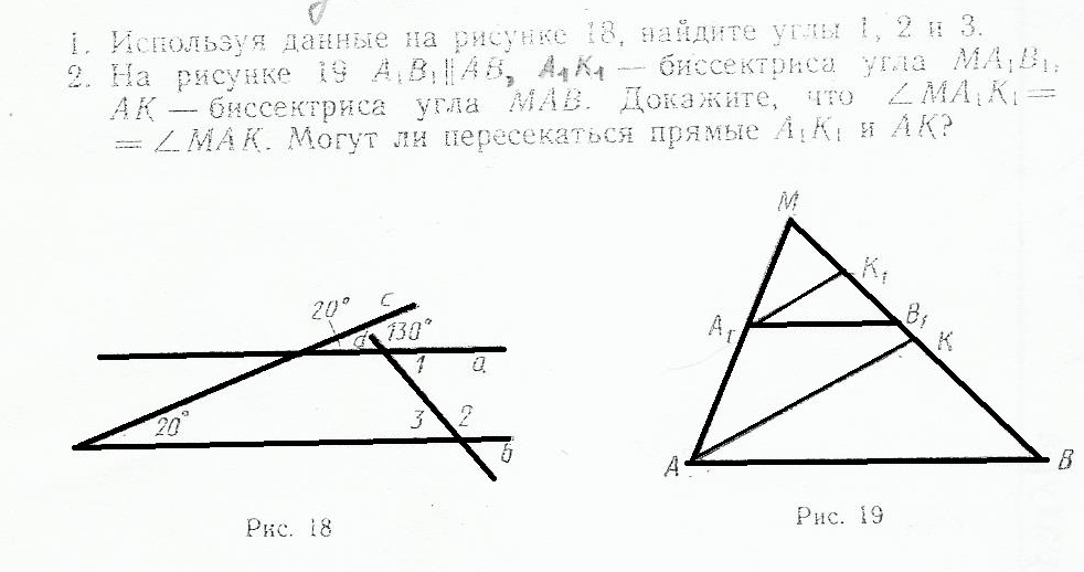 2)На рисунке 19 A1B1 ll AB, A1K1 ,биссектриса угла MA1B1