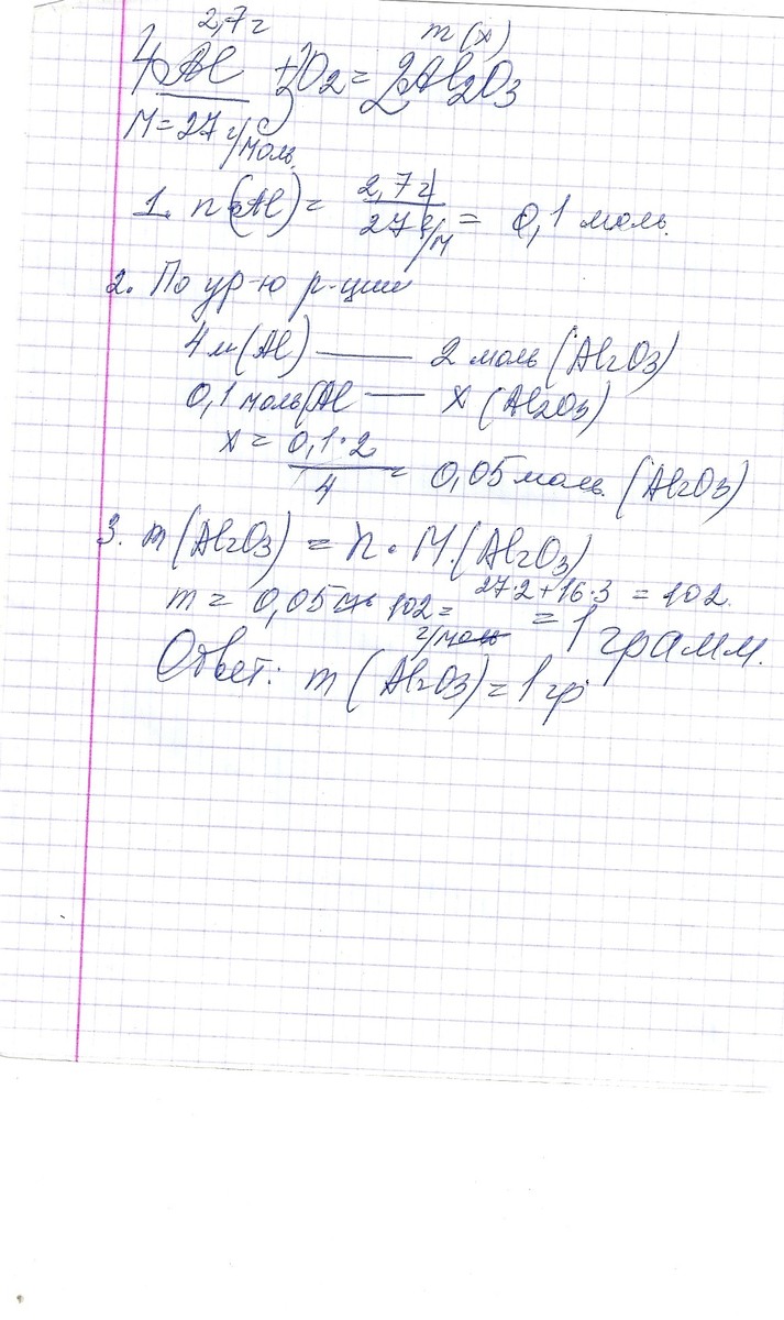 Какова масса оксида алюминия , образующего при взаимодействии 2.7 г алюминия с кислородом ?