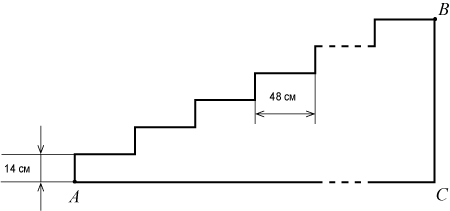 Лестница соединяет точки А и В,расстояние между которыми 25 м.Высота каждой ступени равна 14 см ,а длина 48 см.Найти высоту ВС в метрах ,на которую поднимается лестница.Помогите пожалуйста!:)))))))))))))ОЧЕНЬ СРОЧНО!!!(рисунок дан)