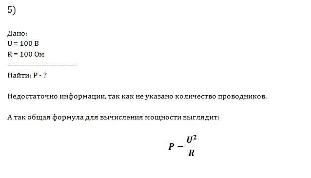 5. Найдите мощность тока в каждом проводнике и во всей цепи. Напряжение на концах цепи 100В. Сопротивления каждого проводника 100 Ом.