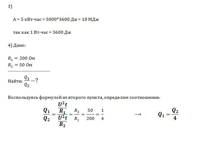 3. Выразите в джоулях работу тока 5 кВт-ч.