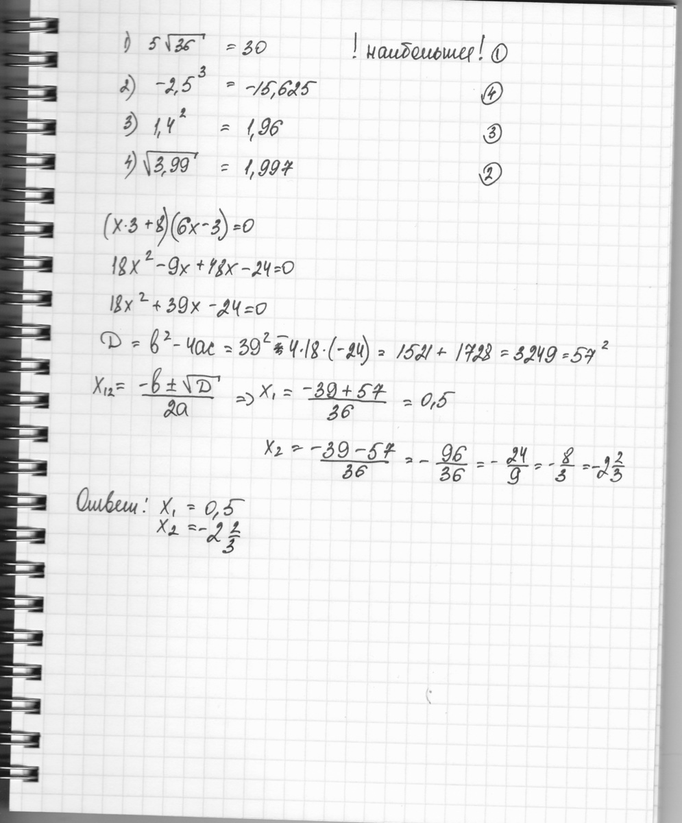 1)5корень36 2)(-2,5) в кубе (3) 3)1,4 в квадрате 4)корень из 3,99