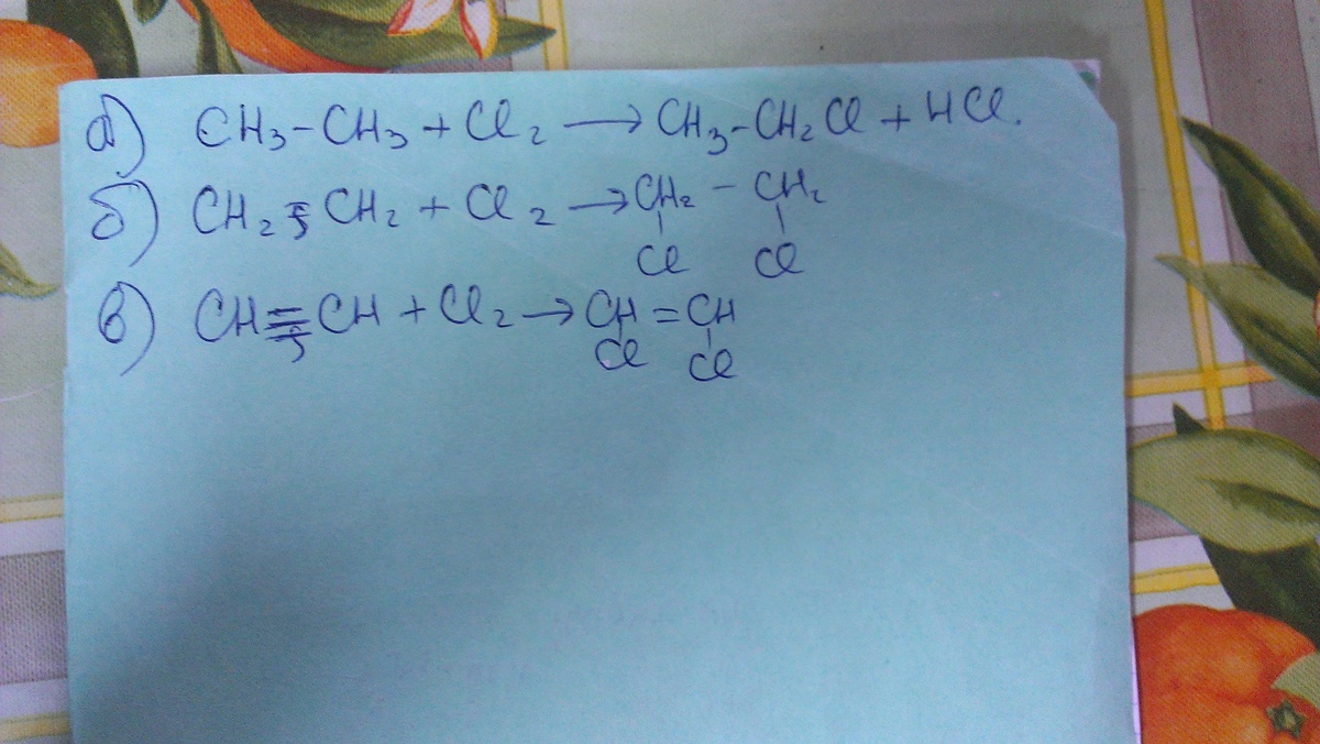 Составьте в структурном виде уравнения реакций с хлороводородом, если они возможны : А) этана Б) этена В) этина