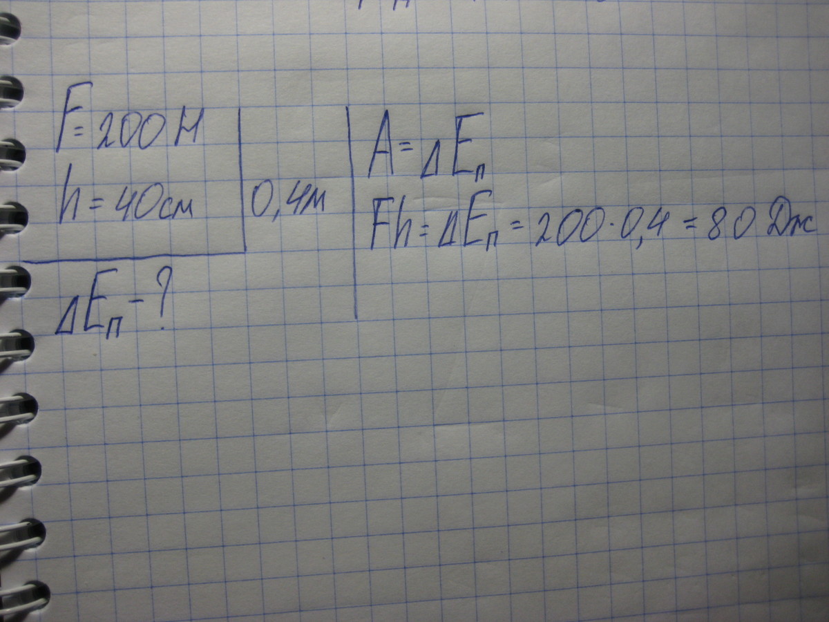!!!!!!!!! под действием силы F=200 h точка А равномерно опустилась на 40 см. на сколько изменилась понтенциальная энергия груза? Массу рычага и трения не учитывайте