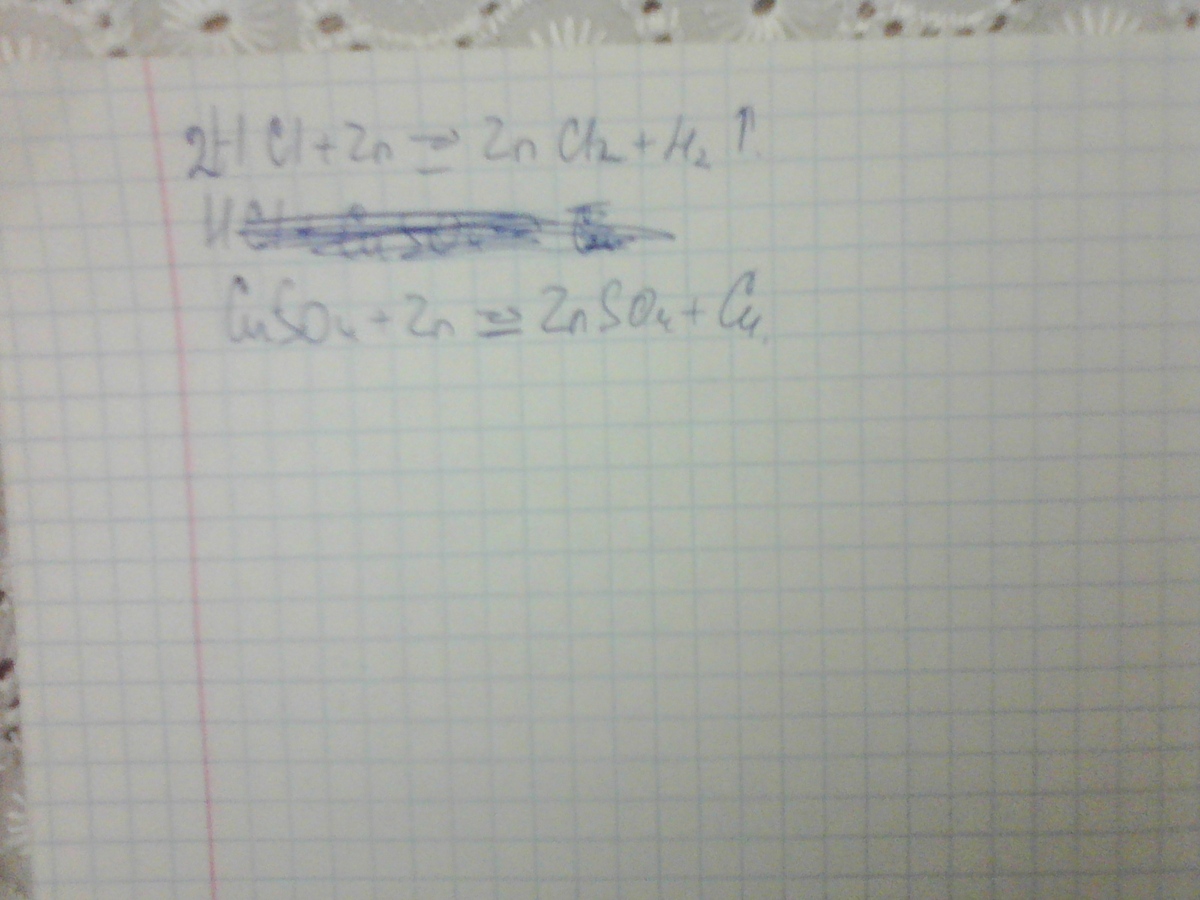 запишите уравнения возможных реакций, если для опыта были взяты вещества: цинк, медь, соляная кислота, растворы хлорида магния и сульфат меди.