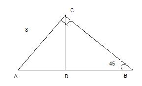В прямоугольном треугольнике ABC<C=90 градусов,AC=8см, <ABC=45 градусов. Найти: а)AB; б)высоту CD, проведенную к гипотенузе.