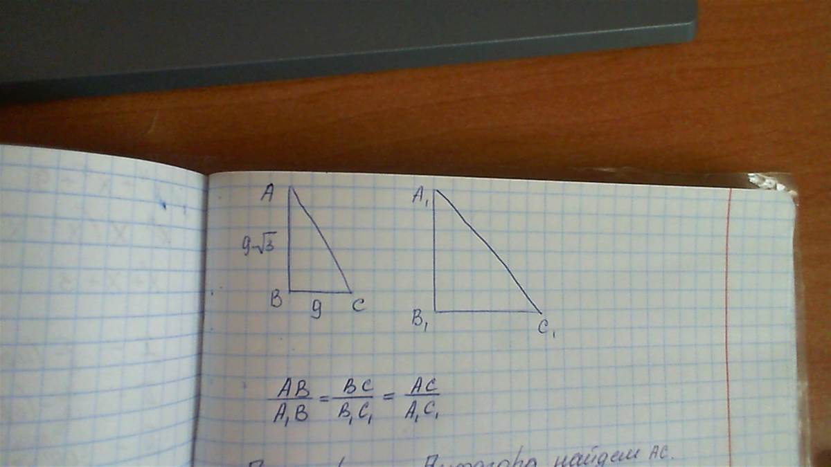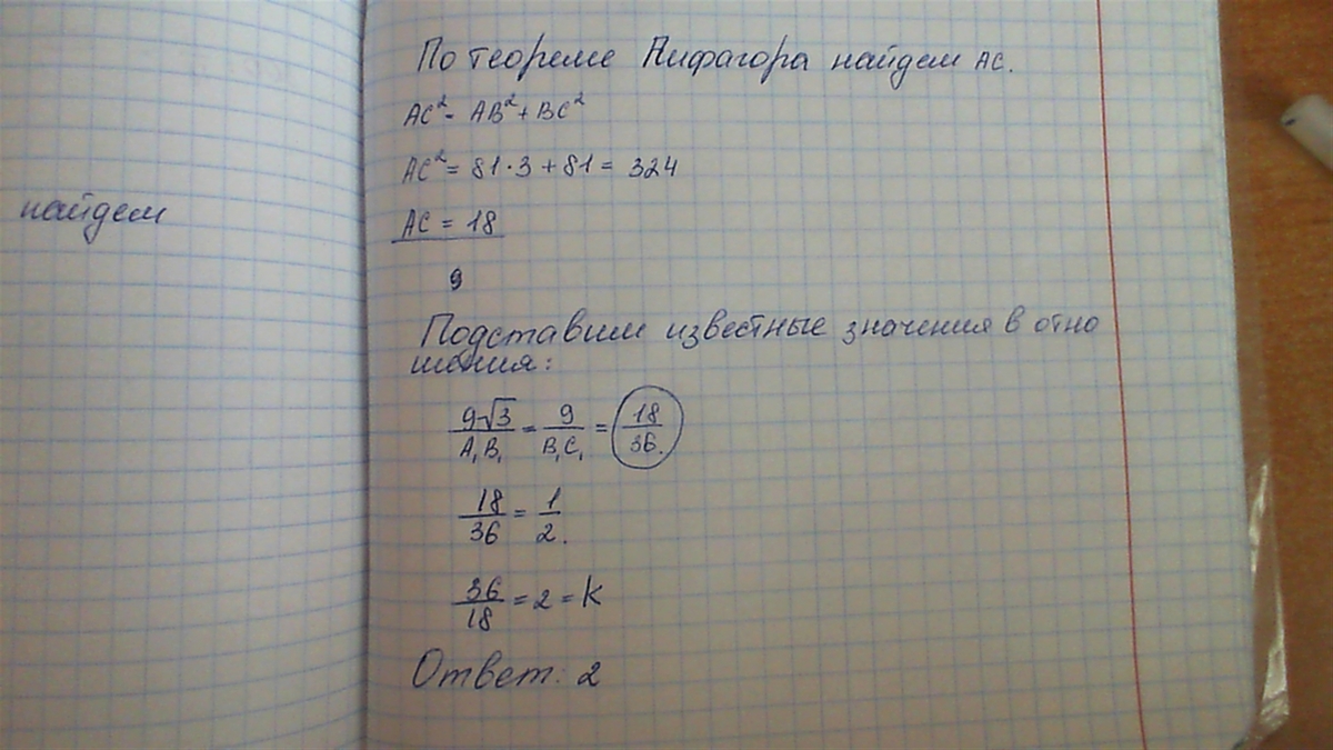 2) Возьми любой отрезок и увеличь его в 2 раза. Нарисуй рядом с треугольником (это будет сторона подобного треугольника). Назовем его ОМ
