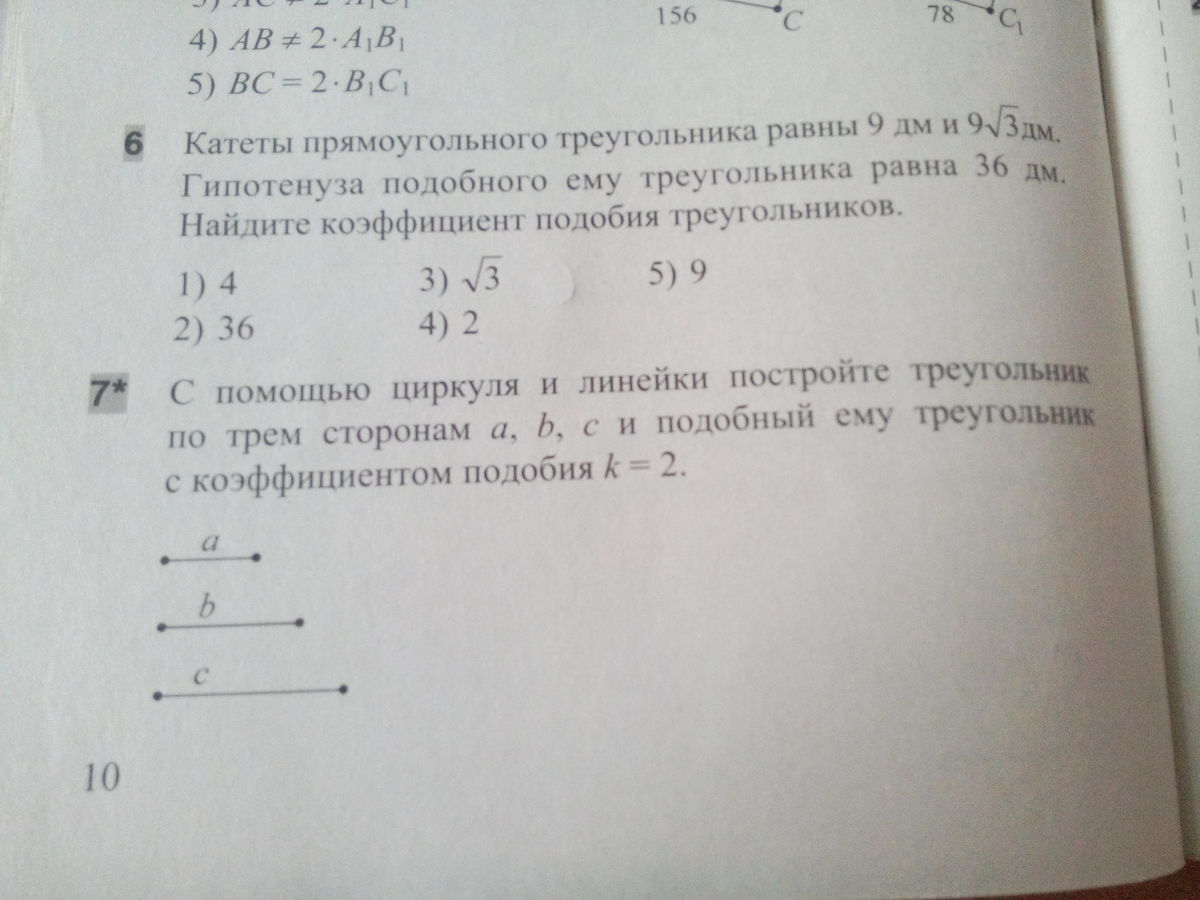 1) Посторить треугольник по данным отрезкам, измеряя их циркулем.
