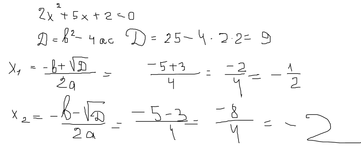 Д=В в квадрате - 4 АС= 5 в квадрате -4*2*2=25-16=9