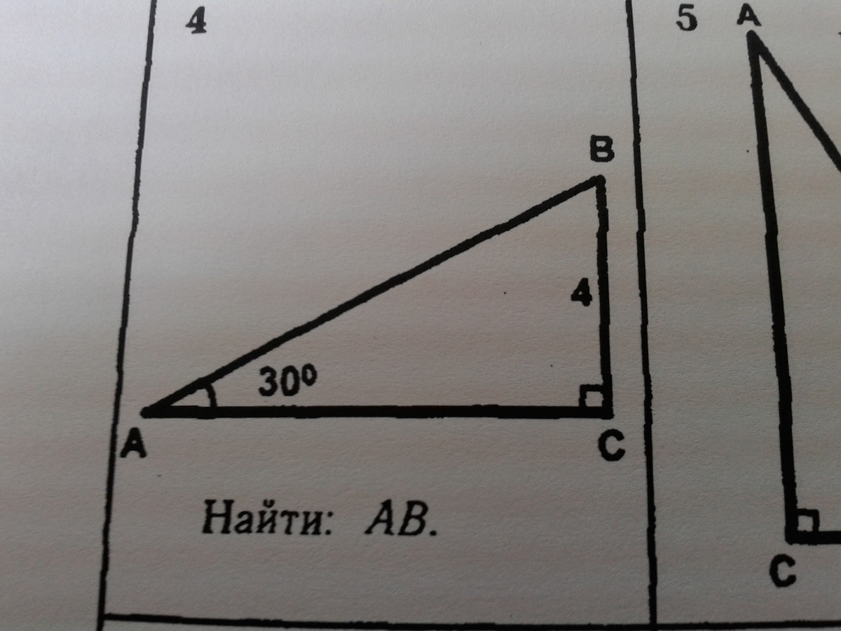 катет, лежащий против угла в 30 градусов равен половине гипотенузы , катет равен 4 , значит АВ гипотенуза равна 4×2=8