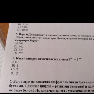 Возводим 9 в степень 7 (последняя цифра в числе 307) + 9 в степень 6 (последняя цифра в числе 306)=531141+4782969. Последняя цифра будет 0.