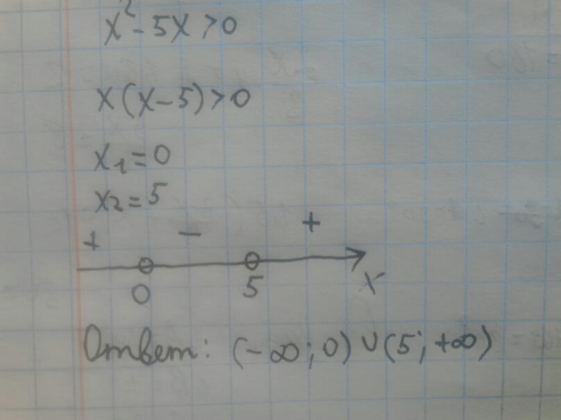 Ответ ( - бесконечность,0)∨(5, + бесконечность)