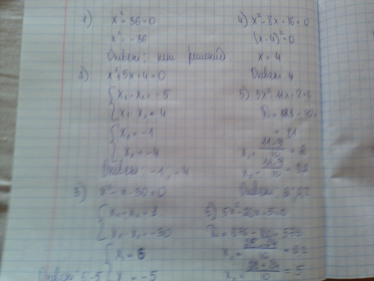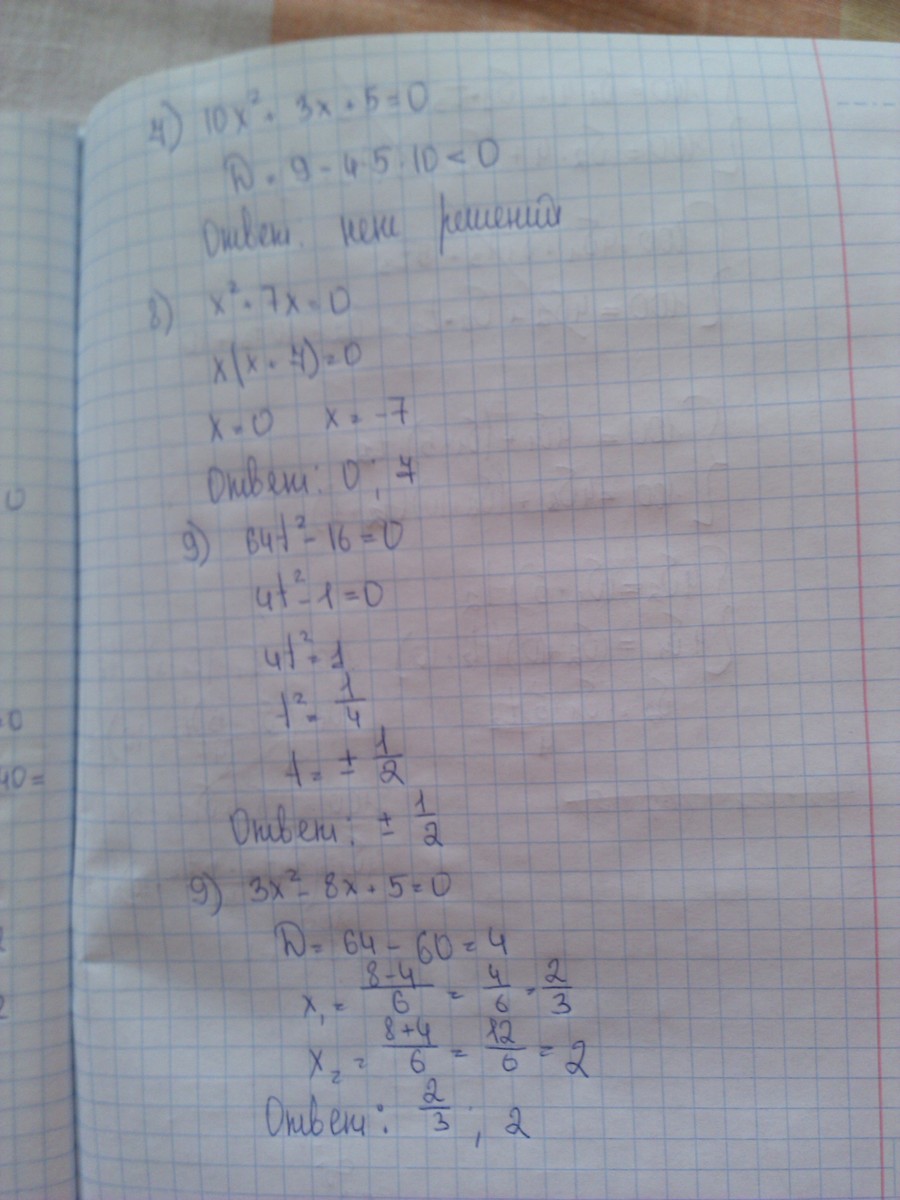 Первые несколько решались через теорему виета, а остальные через дискриминант.
