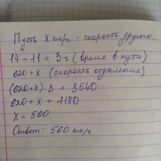 14-11=3часа 3540/3 = 1180км/ч 1180-620=560км/ч