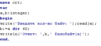 1. Дан размер файла в байтах. Используя операцию деления нацело, найти количество полных килобайтов