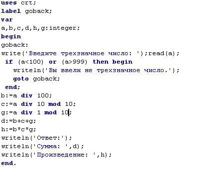 4*. Дано трехзначное число. Найти сумму и произведение его цифр