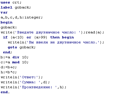 3. Дано двузначное число. Найти сумму и произведение его цифр