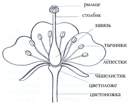 Различие:вишня на ветках растёт, а тюлпан от луковицы.Строение цветка тюльпана:1 - листочки околоцветника;2 - пыльники;3 - тычиночные нити;4 - пестик с семяпочками в завязи;5 - рыльце пестика.