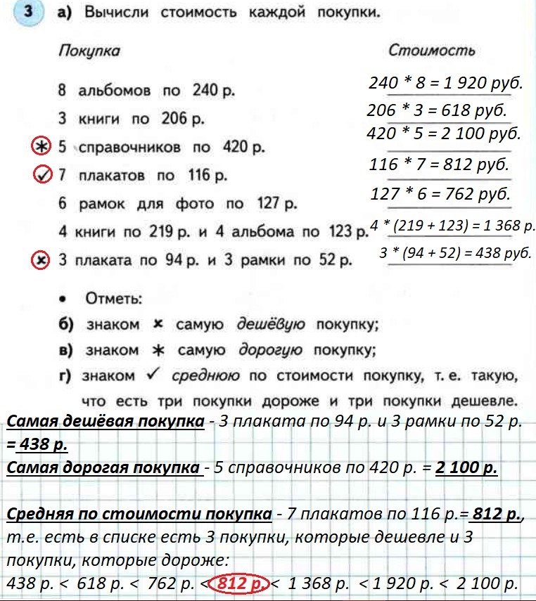 Отметить среднюю по стоимости покупку, т.е. такую, что есть три покупки дороже и три покупки дешевле.