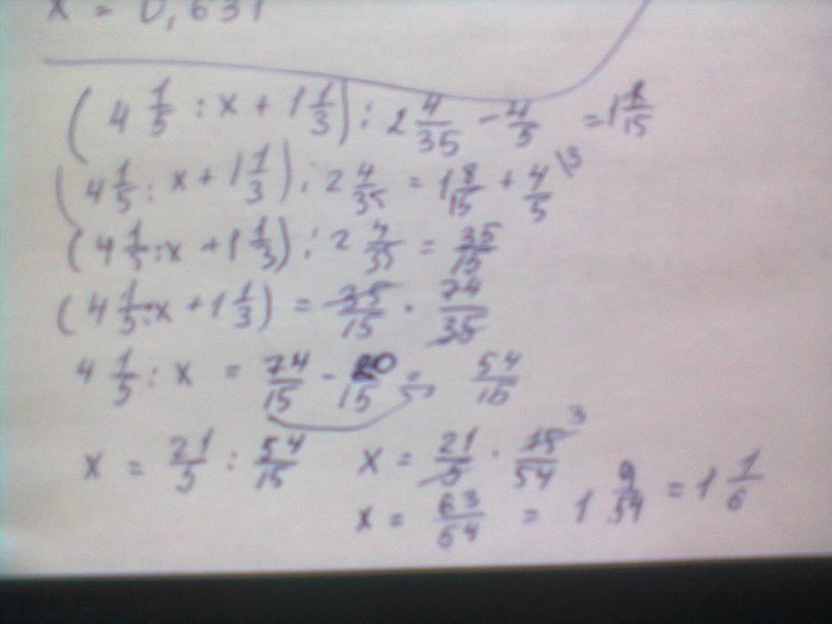 2 4/35= 74/35;(( 63+20x)/15x) * 35/74 - 4/5= 23/15