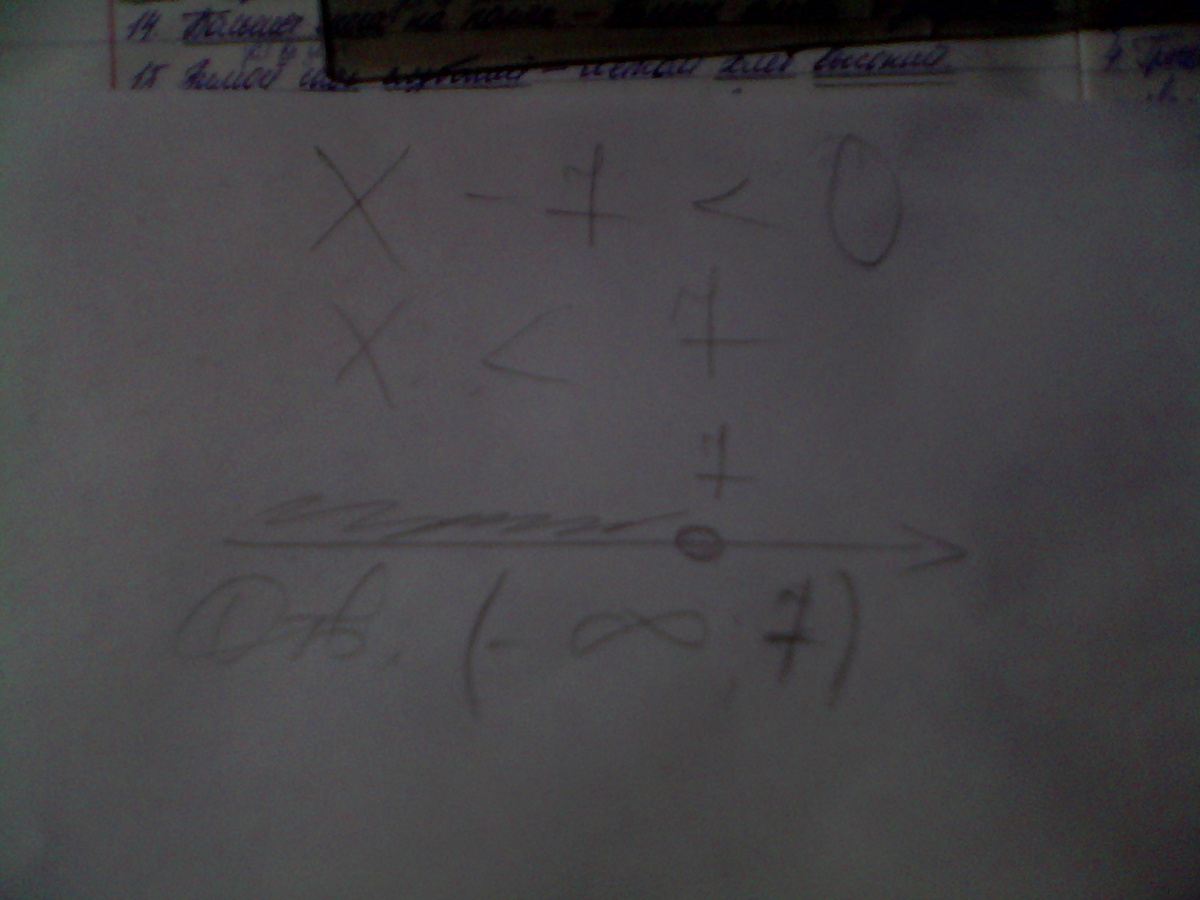 И на координатной плоскости отмечаешь точку 7 и так как х меньше 7,то закрашиваем левую сторону и ответ будет от минус бесконечности до 7
