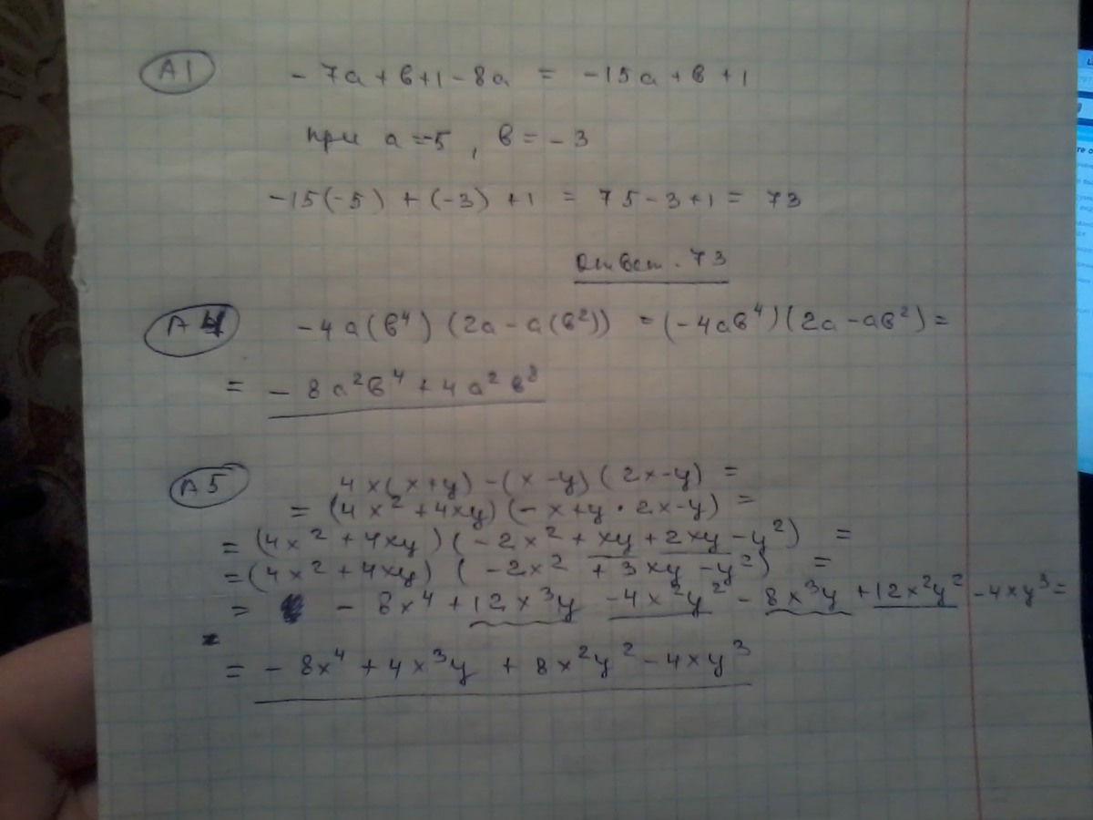 А4 Выполните умножение -4а(в 4)(2а-а(в2)).