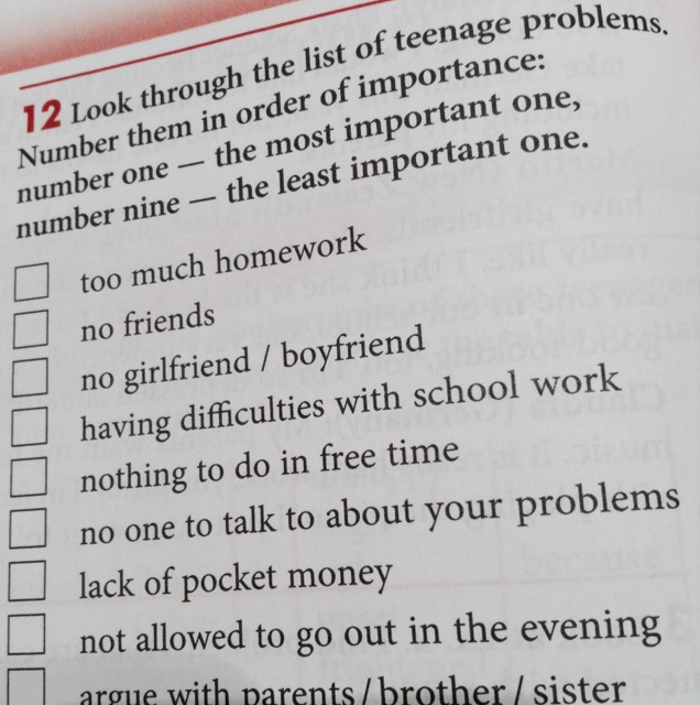 пронумеруй проблемы подростков в таком порядке, в котором считаешь нужным, 1 - самая важная