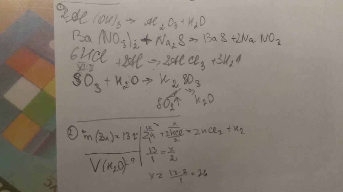 №1 Даны схемы реакций: а) гидроксид алюминия -> оксид алюминия + вода;б) нитрат бария + сульфат натрия -> …;в) соляная кислота + алюминий -> …;г) оксид серы (VI) + вода -> …