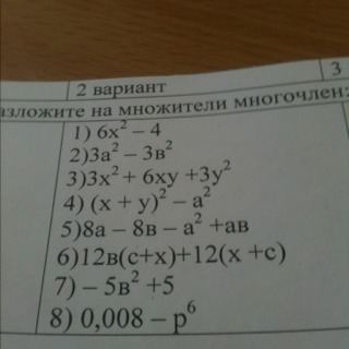 1. 2(3(х в квадрате)- 2) 2. 3(а-в)(а+в)