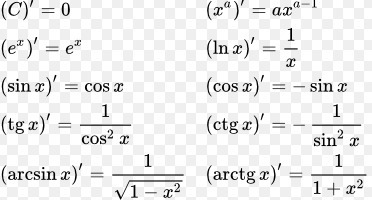 Таблица производных смотрите во вложении