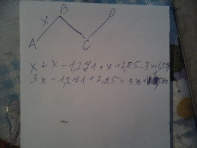 Составьте выражение для длины незамкнутой ломаной АВСD, если АВ=Xдм,BC на 12,71см меньше АВ, а СВ на 2,85дм больше АВ, и упрастите его.