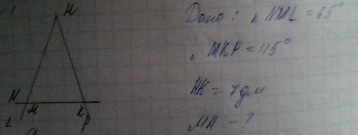 угол НКМ=180-115=65(смежные углы)
