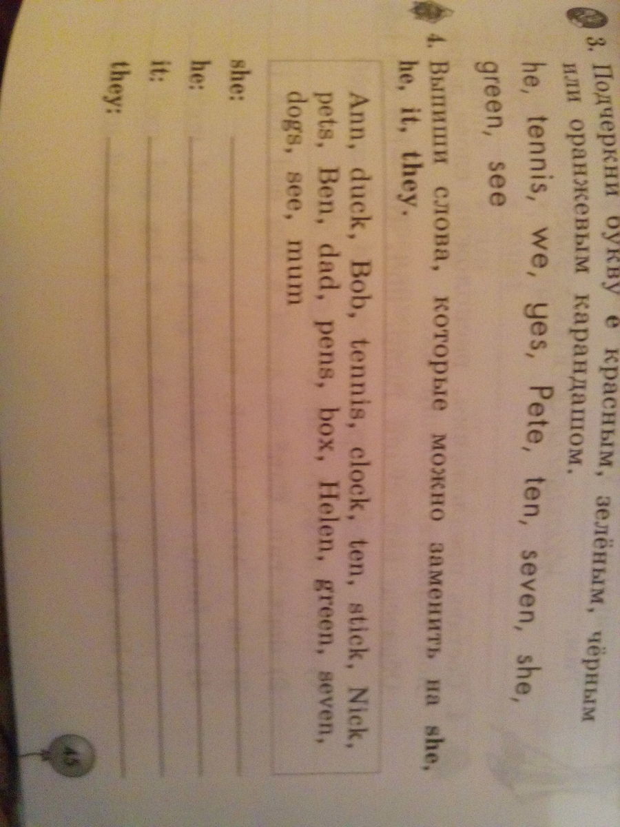 все имена женские в she все имена мужские в he всех животных в it все слова с окончанием s в they