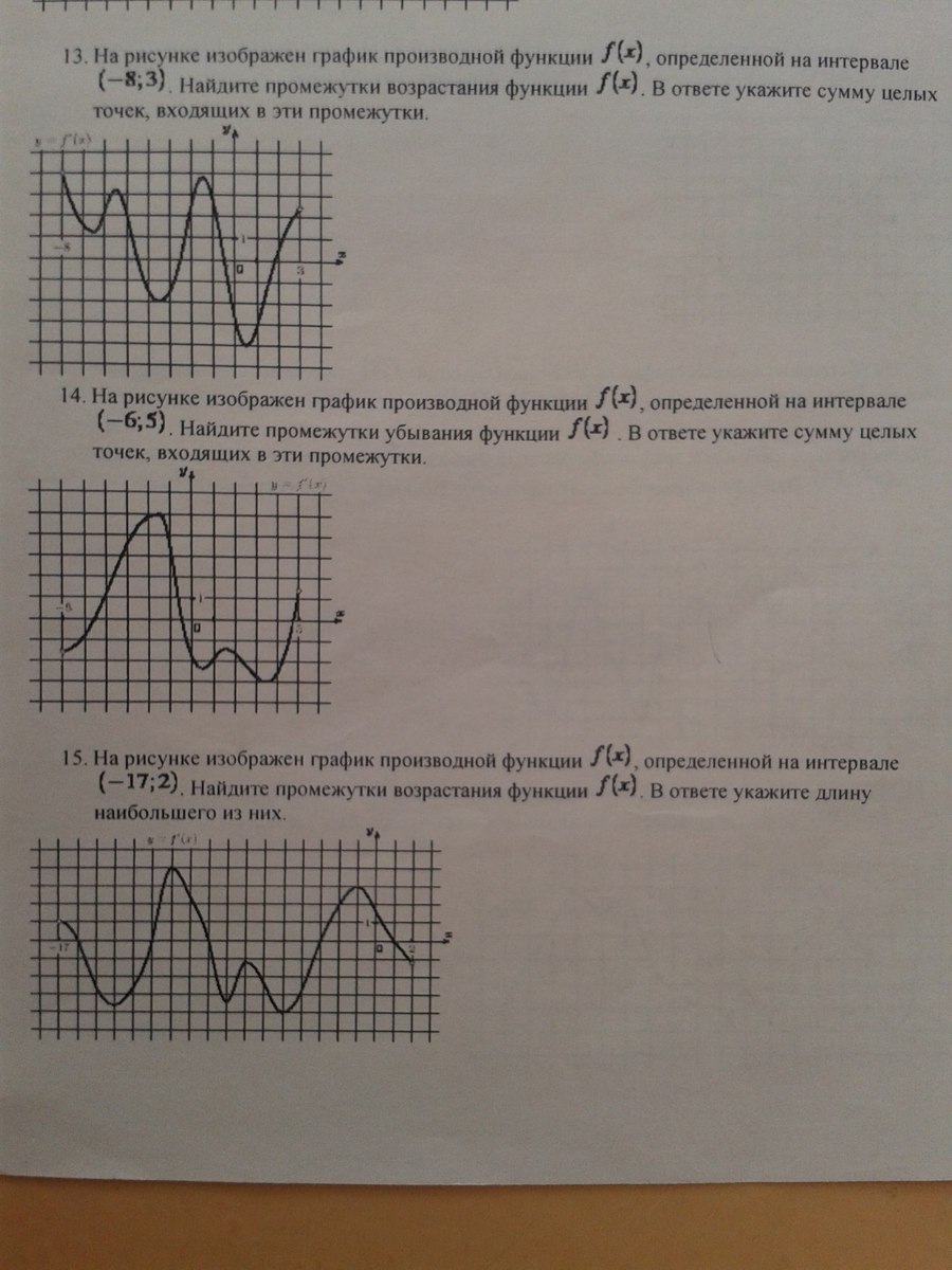 на рисунке изображен график производной функции f(x) определенной на интервале (-8:3).Найдите промежутки возрастания функции f(x).В ответе укажите сумму целых точек, входящих в эти промежутки. ЕСЛИ МОЖНО ВСЕ ТРИ)