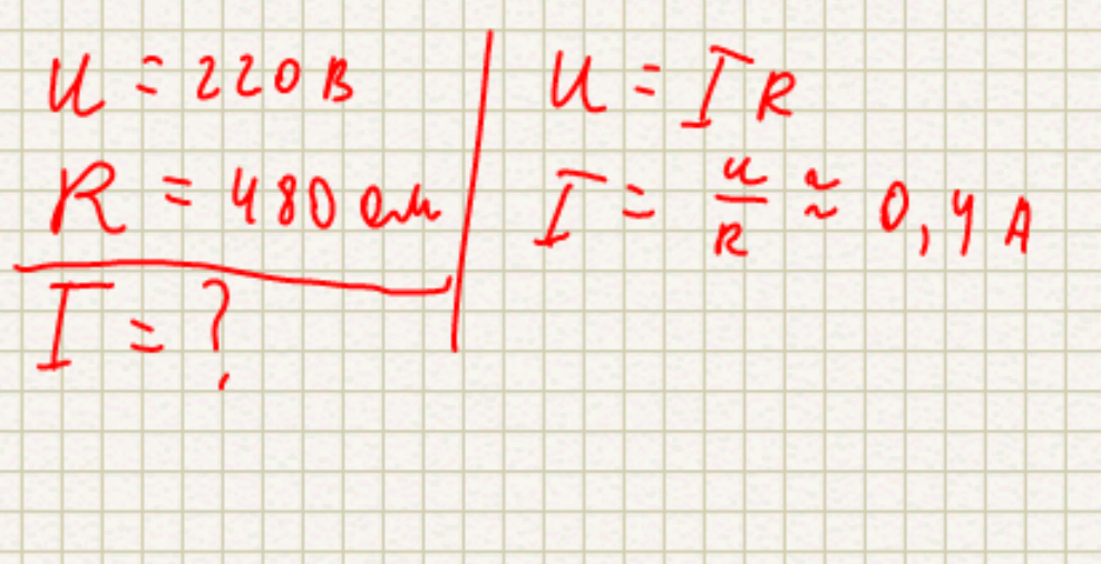 В электрическую сеть напряжением 220 в включен электрический звонок сопротивлением 480 ом. Какова сила тока, текущего через звонок?