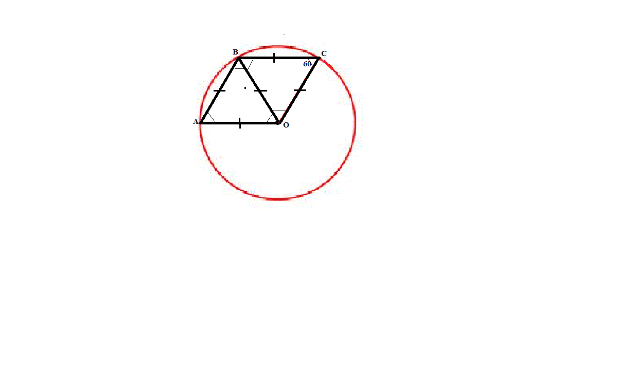 Точки A,B,C лежат на окружности центром которой является O найдите величину углов параллелограмма ABCO