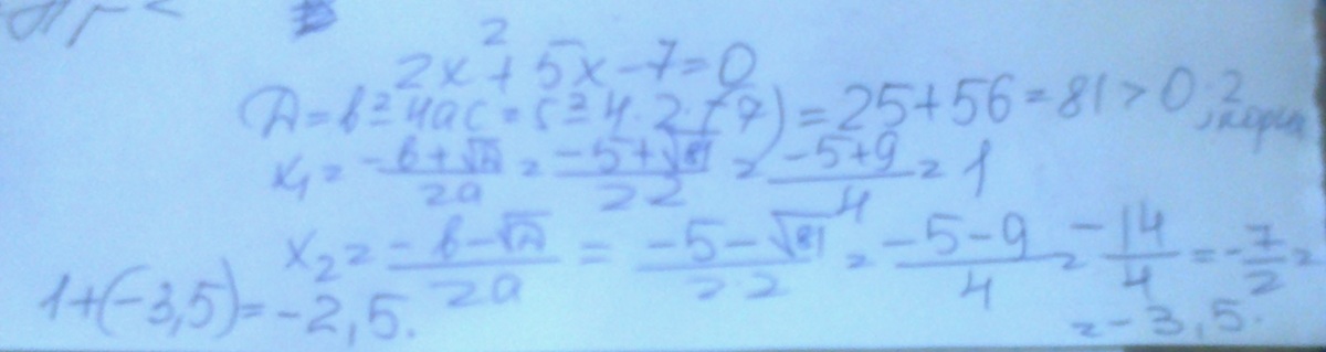 D = b2 - 4ac = 52 - 4·2·(-7) = 25 + 56 = 81