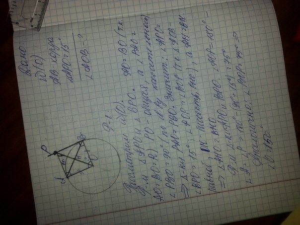 в окружности с центром в точке О проведена хорда АВ через точки А и В проведены касательныек окружности пересекающиеся в точке Р .найдите градусную меру угла АОВ если угол АРО равен 15 градусов