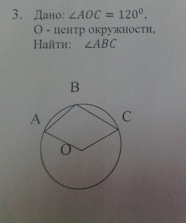 угол AOC-центральный т.к. его вершина-центр окружности => дуга AC=120