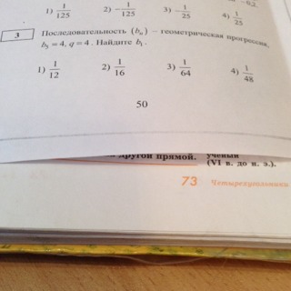 Последовательность b(n)- геометрическая прогрессия, b5=4, q=4. Найти b1