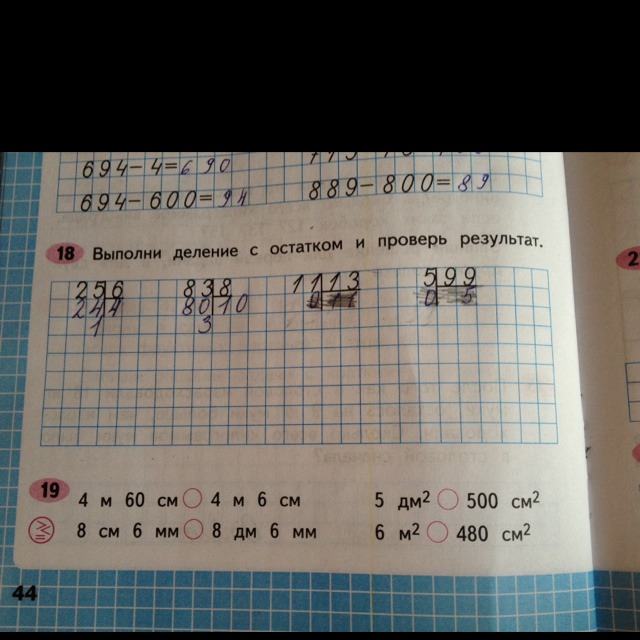 Выполните деление с остатком и сделайте проверку . Я сделала два примера . Сделайте проверку во всех примерах.то что карандашом не обращайте внимание :)
