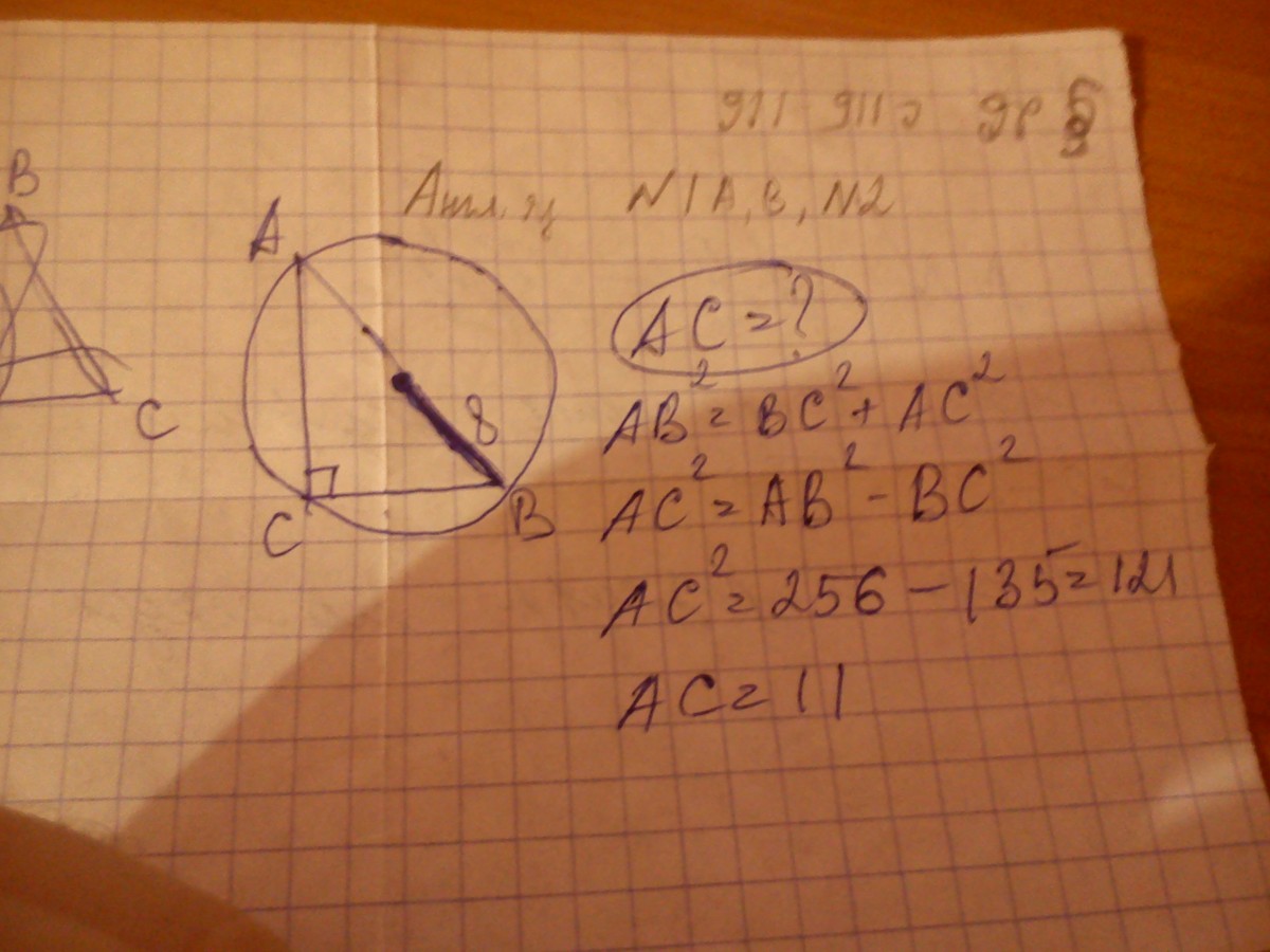 Помогите с решением. В треугольнике ABC угол С равен 90 градусам, ВС = √135. Радиус описанной окружности этого треугольника равен 8. Найдите АС.
