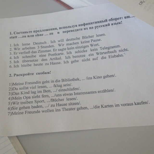 1.Ich lerne Deutsch,um deutsche Bücher zu lesen.Я учу немецкий язык,чтобы читать немецкие книги.