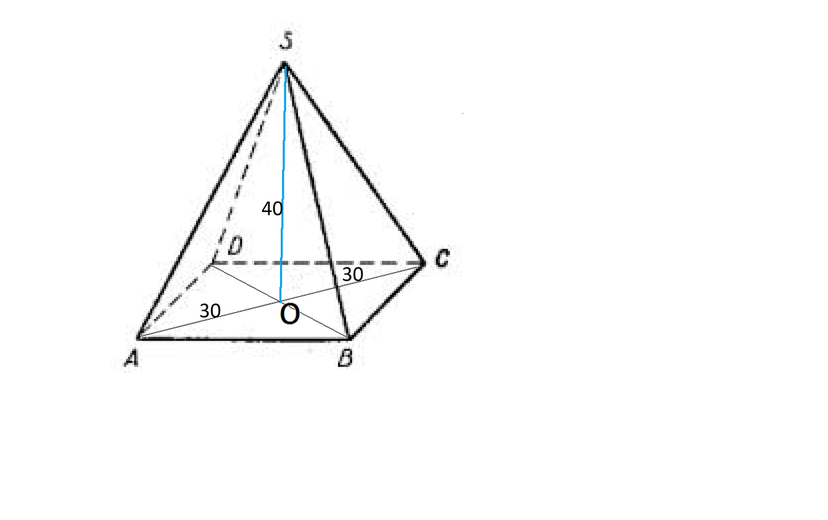 В правильной четырёхугольной пирамиде точка О центр основания, S вершина, SO=40 Ac=60.найдите боковое ребро SA.