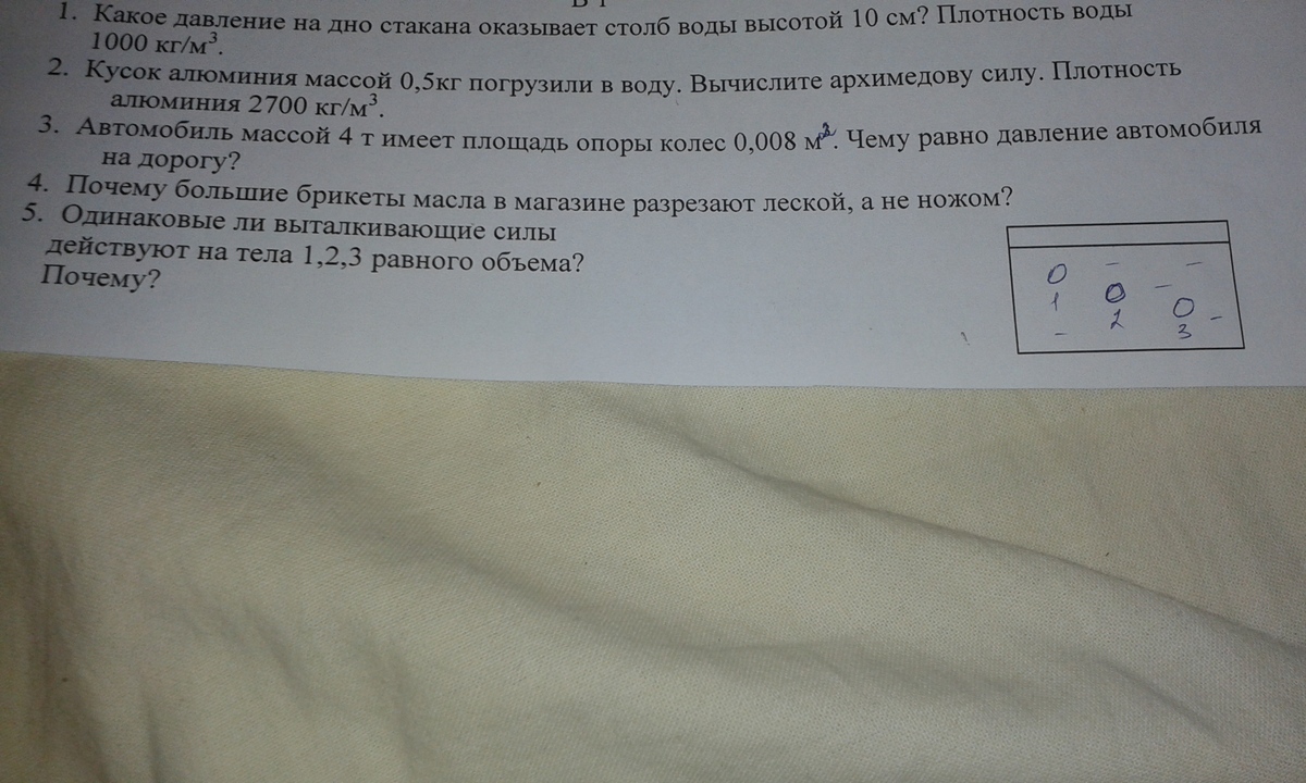 5 - ДА, т.к. Fархимедова зависит от объема тела и плотности жидкости. Тела находятся в одной жидкости, и они одного объема, а значит выталкивающая сила одинакова.