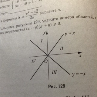 Пользуясь рисунком, укажите номера областей, составляющих решение неравенства (х-у)(х+у)>или=0. С объяснением, пожалуйста