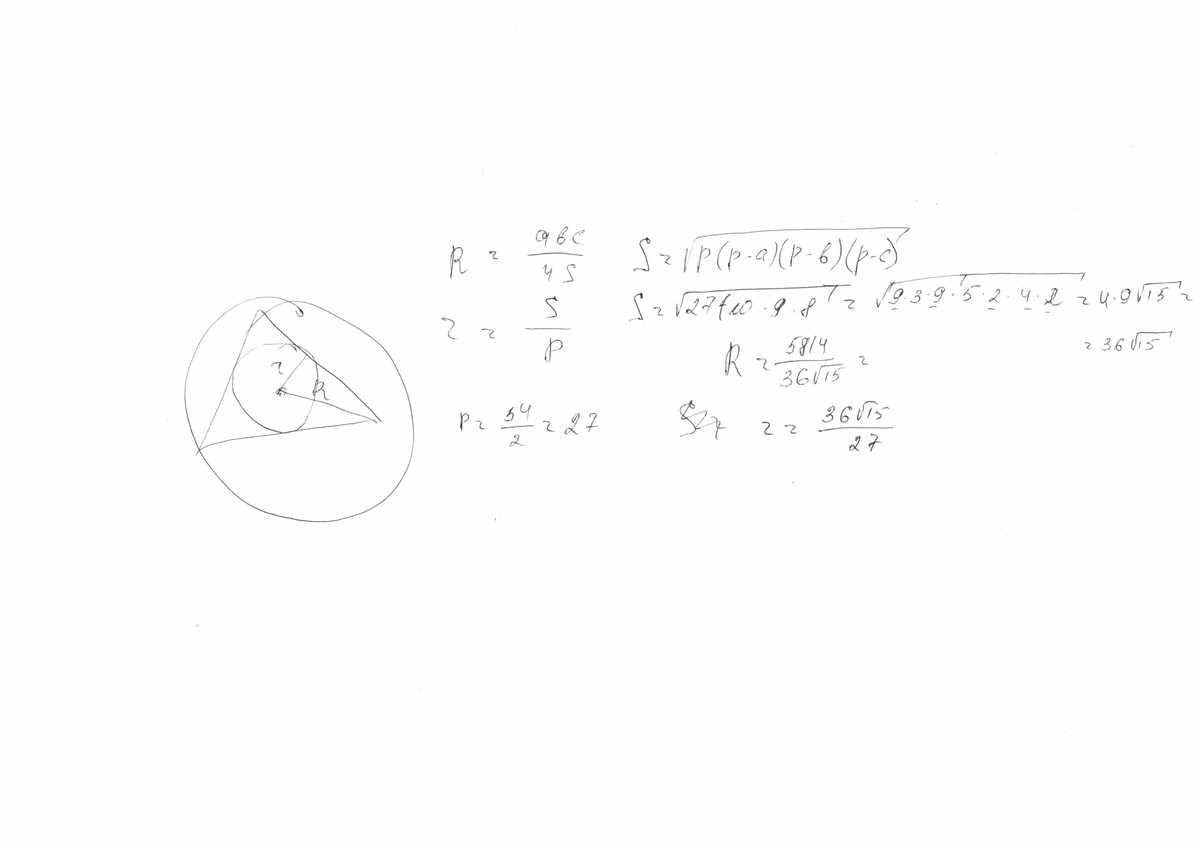 Дан треугольник со сторонами 17,18,19.Найдите радиусы вписанной в него и описанной около него окружностей
