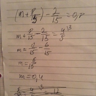 m = 4/5 - 6/15 15/15 m = 12/15 - 6/15 15/15 m = 6/15 15 m = 6